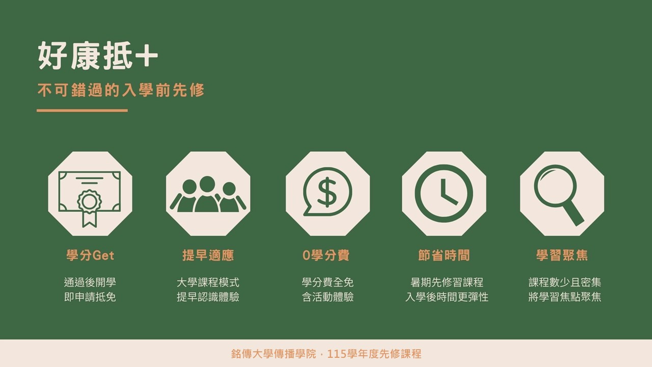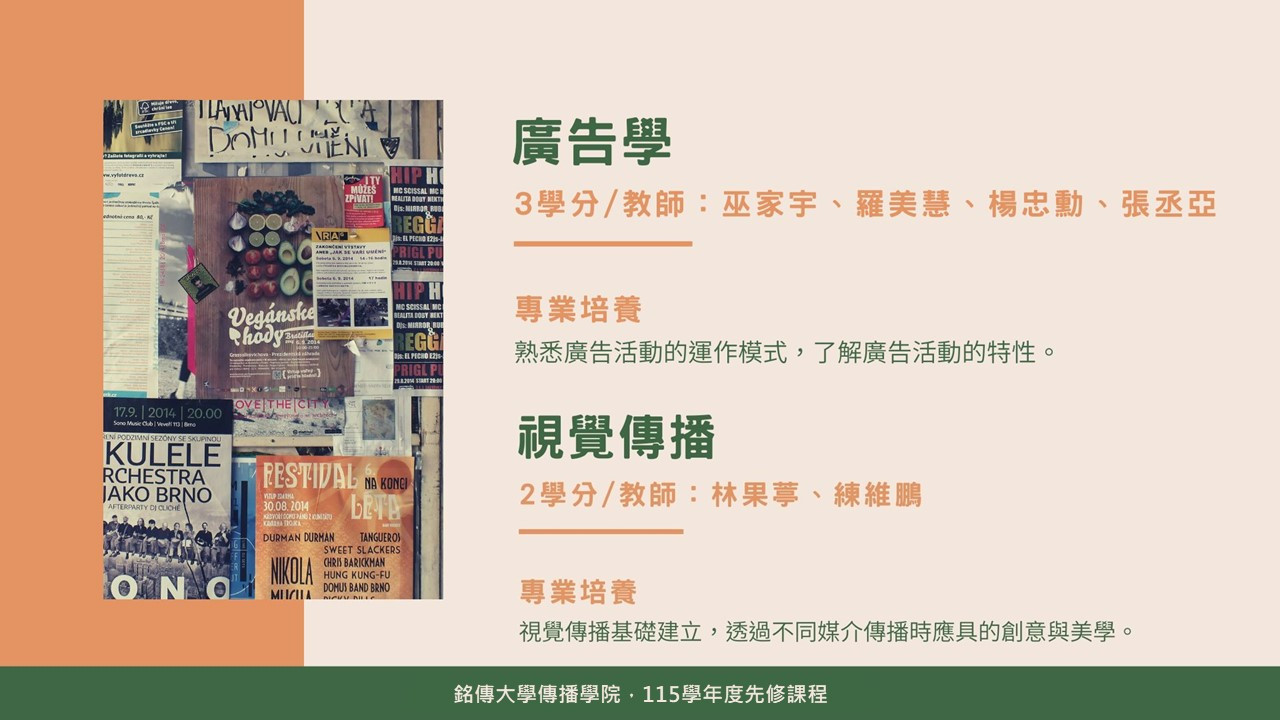 傳院先修班開跑!廣告學、視覺傳播兩大必選修課程,利用暑假提前進行修習。提早熟悉環境、結交跨系伙伴,不僅學分費用全免,還有多元文化走讀。不必擔心進大學如何適應,來先修班準沒錯!